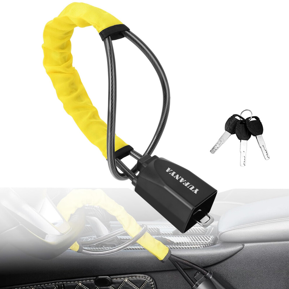 Steering Wheel Lock with 3 Keys,Heavy Duty Universal Car Steering Wheel to Seat Belt Locks,High Visibility Cut Resistance Car Lock Anti-Theft Device(Yellow)