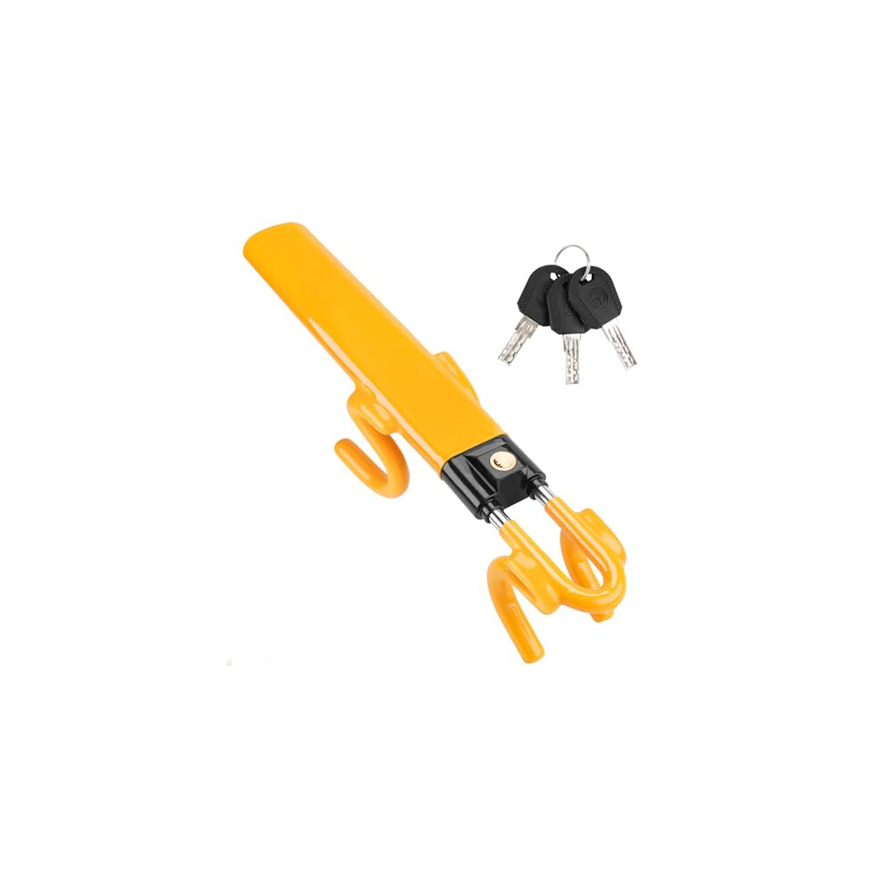 Steering Wheel Lock, Car Steering Wheel Locks, Heavy Duty Universal Steering Wheel to Seat Belt Lock, Double Car Anti Theft Device, Fits Most Vehicles, 3 Keys, Yellow