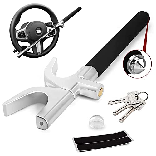Steering Wheel Lock, lootaan Universal Car Lock Anti-Theft Device for Cars Vans Trucks Heavy Duty Steering Lock with 3 Keys and Safety Hammer Function for Car Security, Silver
