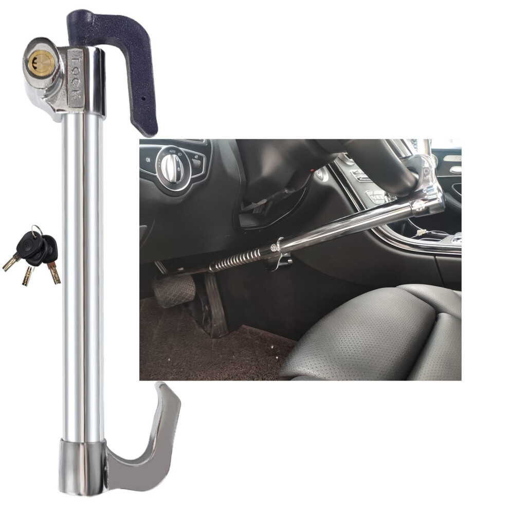 Tevlaphee Steering Wheel Lock, Car Break Pedal Lock, Retractable Hook, Universal, Heavy Duty, Anti-Theft for Car SUV Truck Van Security with 3 Keys