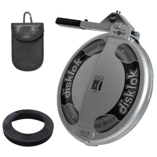 Disklok Gold Security Edition Combo Pack Car Steering Wheel Full Cover Anti- Angle Grinder Anti-Theft Lock Police Approved Inc. Cover & Small RFID Pouch (Silver, Medium 39cm - 44cm)