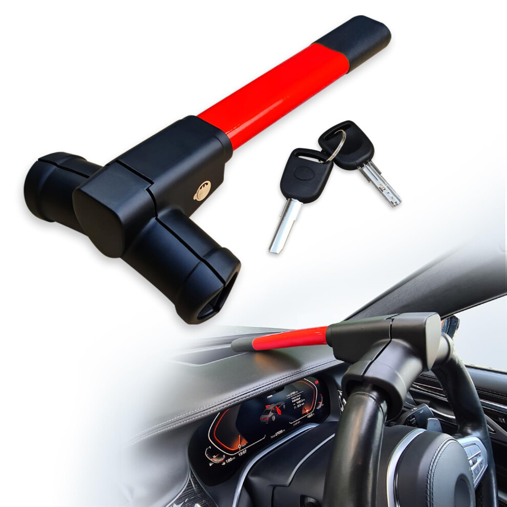 Sevenwalls Steering Wheel Lock - Car Security Device for Auto/SUV/Van, Anti-Theft T-Bar Immobilizer to Safeguard Your Vehicle and Deter Thieves (Red)