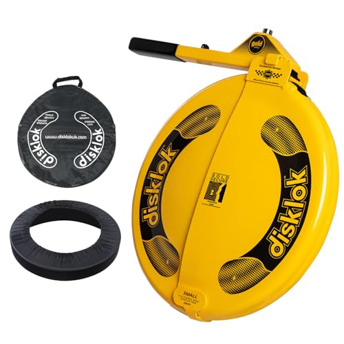Disklok Gold Security Edition Combo Pack Car Steering Wheel Cover Anti-Angle Grinder Anti-Theft Lock Police Approved Inc. Bag & Cover (Yellow, Small 35cm - 39cm)
