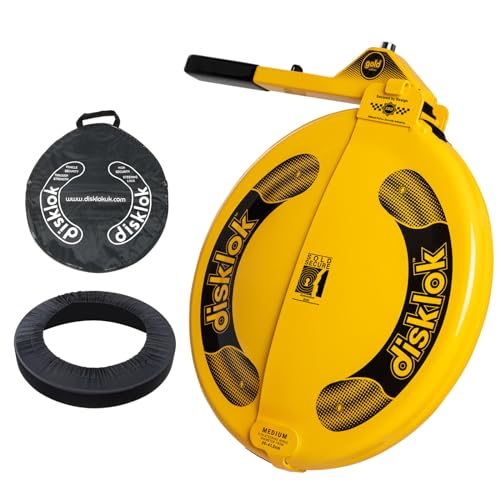Disklok Gold Security Edition Combo Pack Car Steering Wheel Cover Anti-Angle Grinder Anti-Theft Lock Police Approved Inc. Bag & Cover (Yellow, Medium 39cm - 44cm)