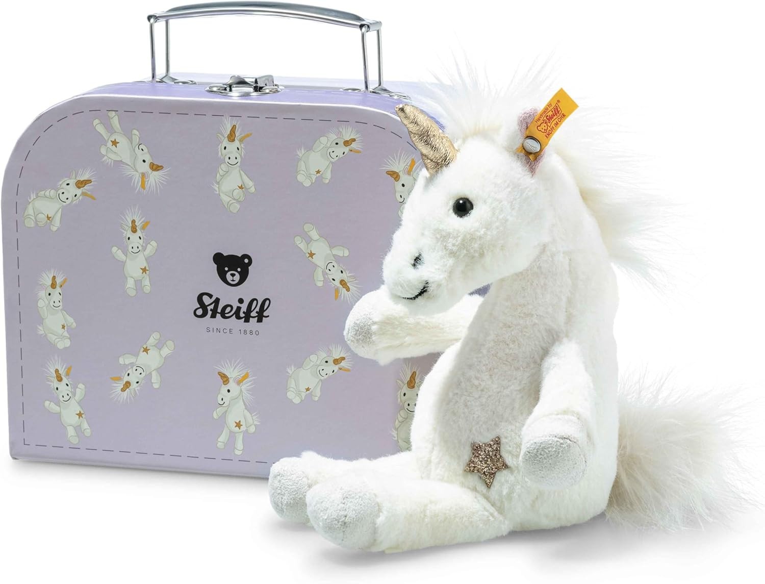 Steiff 708015 Cuddly Toy Unicorn in Suitcase, Cute Stuffed Toy, Children, Boys & Girls, Friends, Plush Toy 20 cm, White