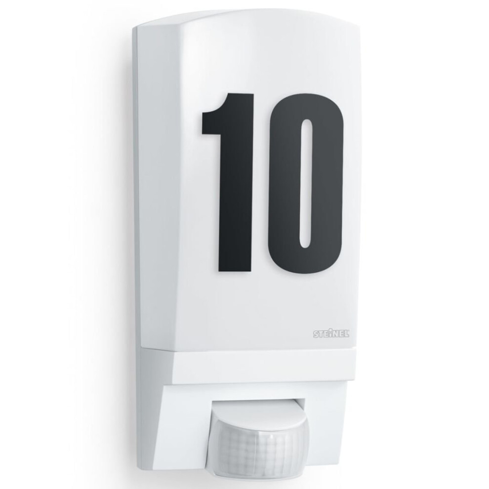 House Number Light L 1 S White E27 - max. 60 Watts Outdoor Wall Light with 180 Motion Sensor 10 m Range - Number Plaque Light for Front Door