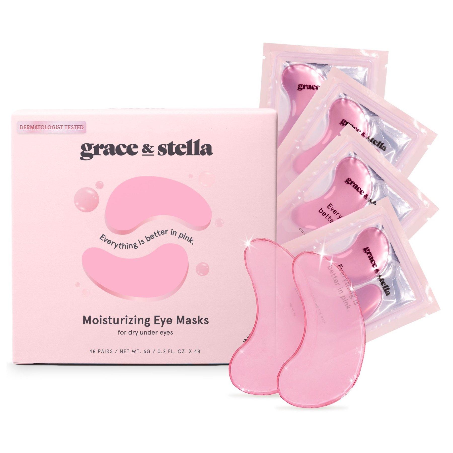 Award Winning Under Eye Mask - Reduce Dark Circles, Puffy Eyes, Undereye Bags, Wrinkles - Gel Under Eye Patches, Vegan Cruelty-Free Self Care by grace and stella (48 Pairs, Pink)