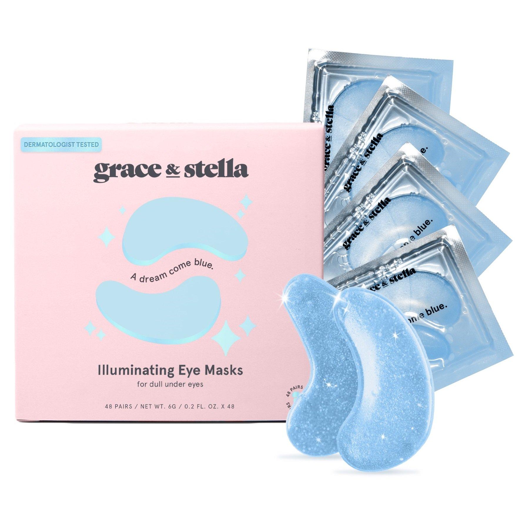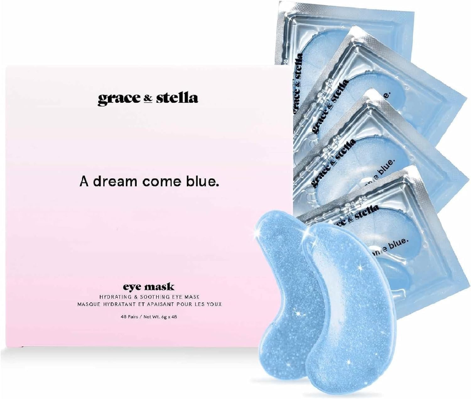 Award Winning Under Eye Mask - Reduce Dark Circles, Puffy Eyes, Undereye Bags, Wrinkles - Gel Under Eye Patches, Vegan Cruelty-Free Self Care by grace and stella (48 Pairs, Blue)