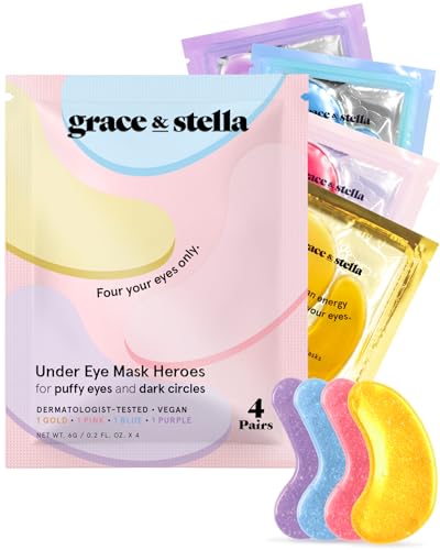 grace & stella Under Eye Gel Patches Multi-Color Pack - 4 Pairs of Under Eye Patches for Dark Circles - 4 Colors/1 Pair Each - Puffy Eyes Treatment - Vegan Cruelty Free Birthday Gifts for Women