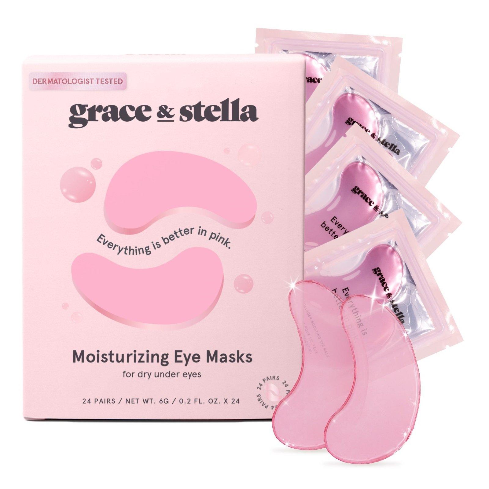 Award Winning Under Eye Mask - Reduce Dark Circles, Puffy Eyes, Undereye Bags, Wrinkles - Gel Under Eye Patches, Vegan Cruelty-Free Self Care by grace and stella (24 Pairs, Pink)