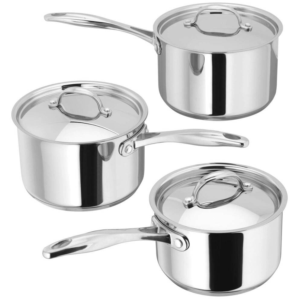 Stellar Profile Set of 3 Stainless Steel Saucepans with Lids, 20cm 18cm 16cm, Induction Ready, Oven Safe, Dishwasher Safe