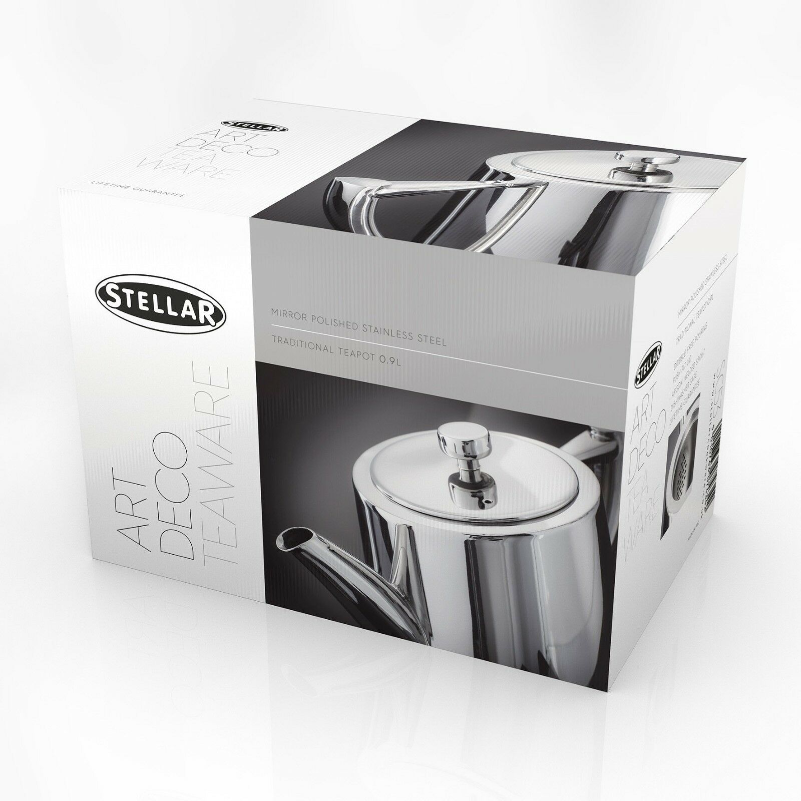 Stellar Art Deco SC54 Stainless Steel Traditional Teapot 1.2L 6 Cup Gift Box