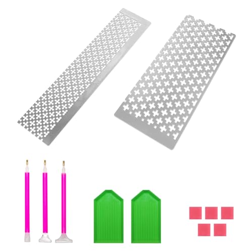 VZU Set of 2 Diamond Painting Stencils, Diamond Painting Mesh Ruler, Stainless Steel Diamond Painting Fixing Tools, Diamond Painting Tool, DIY Drawing Tool Accessory Set