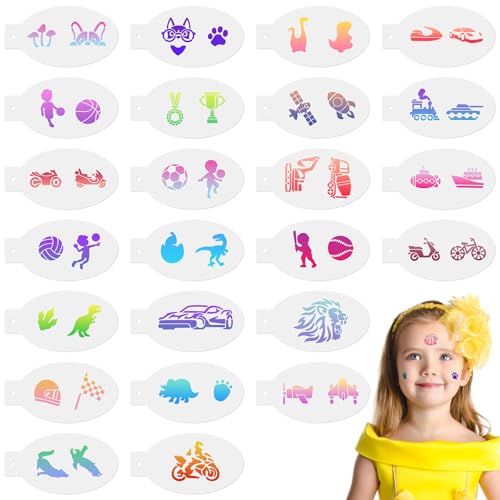 URAQT 24 PCS Face Paint Stencils, Reusable Temporary Tattoo Stencils Tattoo Painting Templates for Kids, Facial Painting Stencil for Party, Christmas, Halloween, Carnivals, C
