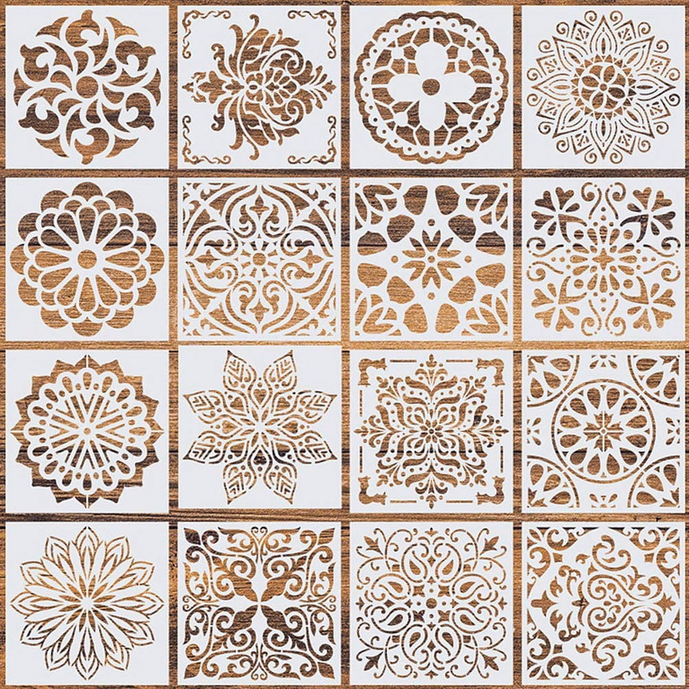 nuoshen 16 Pcs Reusable Stencils, Mandala Stencils Laser Cut Painting Template