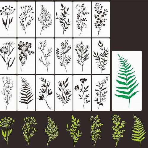 18 Pieces Reusable Stenc-ils Nature Flower Ste-ncils for Fabric Painting Flower Sten-cils Painting Drawing Templates of Floral Leaves for Wood Canvas DIY Art Card Notebook Scrapbook Window Wall Decor