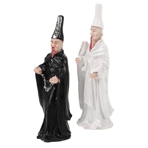 JOINPAYA 2pcs Black and White Ghost Resin Miniatures Sand Table Figurines Gothic Horror Statues for Sand Water Table and DIY Mini Landscape Decor