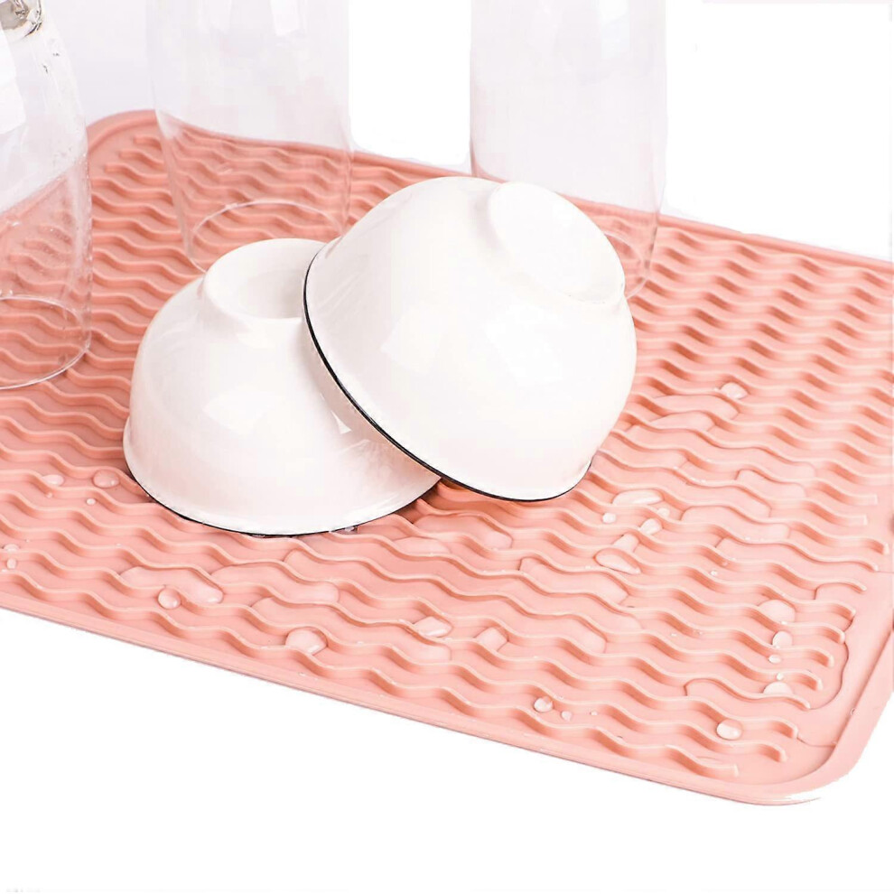 (Pink, One size) Silicone Drainage Mat Dish Drying Mat Drain Boards Heat Resistant Pad Non Slip Placemat