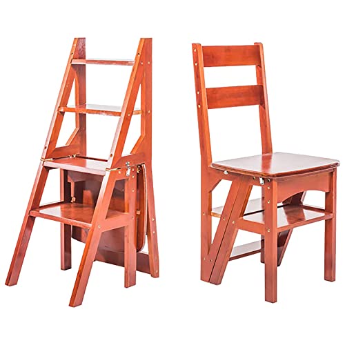 Step Stool Folding Ladder Chair Solid Wood Staircase Chair Dual-use Step Ladders Ladder Stool Wooden Chair Storage Rack Multi-purpose Ladders Step stool (Color : B)