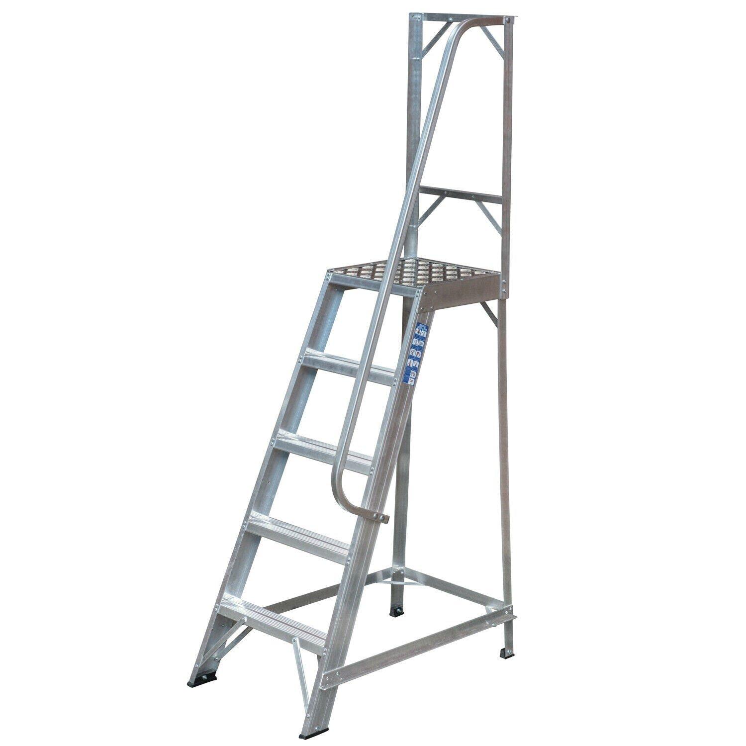 1m XL Platform Step Ladders 5 Tread Anti Slip Steps & Tool Tray Aluminium