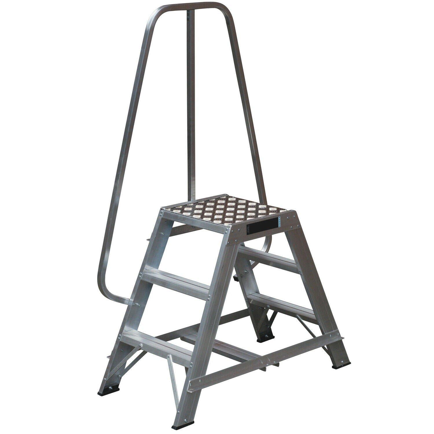 1m Heavy Duty Double Sided Fixed Step Ladders Safety Handrail & Wide Platform