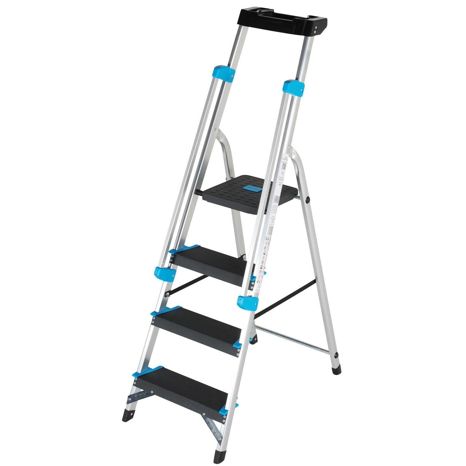 0.8m XL Platform Step Ladders 4 Tread Anti Slip Steps & Tool Tray Aluminium