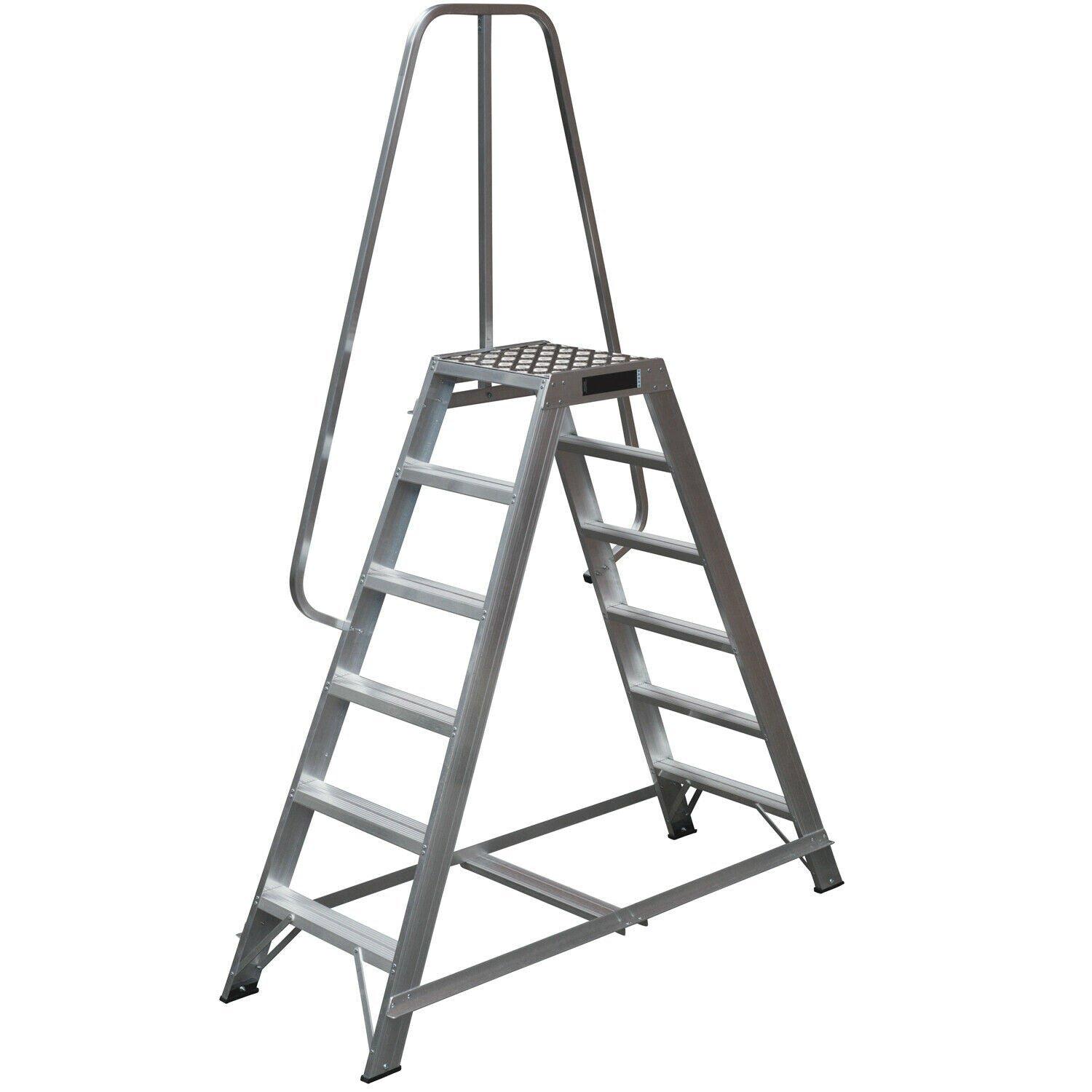 0.7m Heavy Duty Double Sided Fixed Step Ladders Safety Handrail & Wide Platform