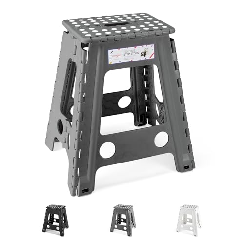 HOUSE DAY 18 inch Tall Folding Step Stool for Adult - Large Heavy Duty Plastic Folding Step Lightweight Step Stool, Easy Carry Fodable stepping Stool for Indoor Outdoor, Grey
