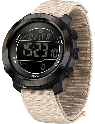 findtime Mens Digital Sport Watch Pedometer Step Counter Watches Military Minimalist Waterproof Tactical Outdoor Army Wrist Watch Dual Time Led Countdown Stopwatch Alarms Nylon Strap, No App