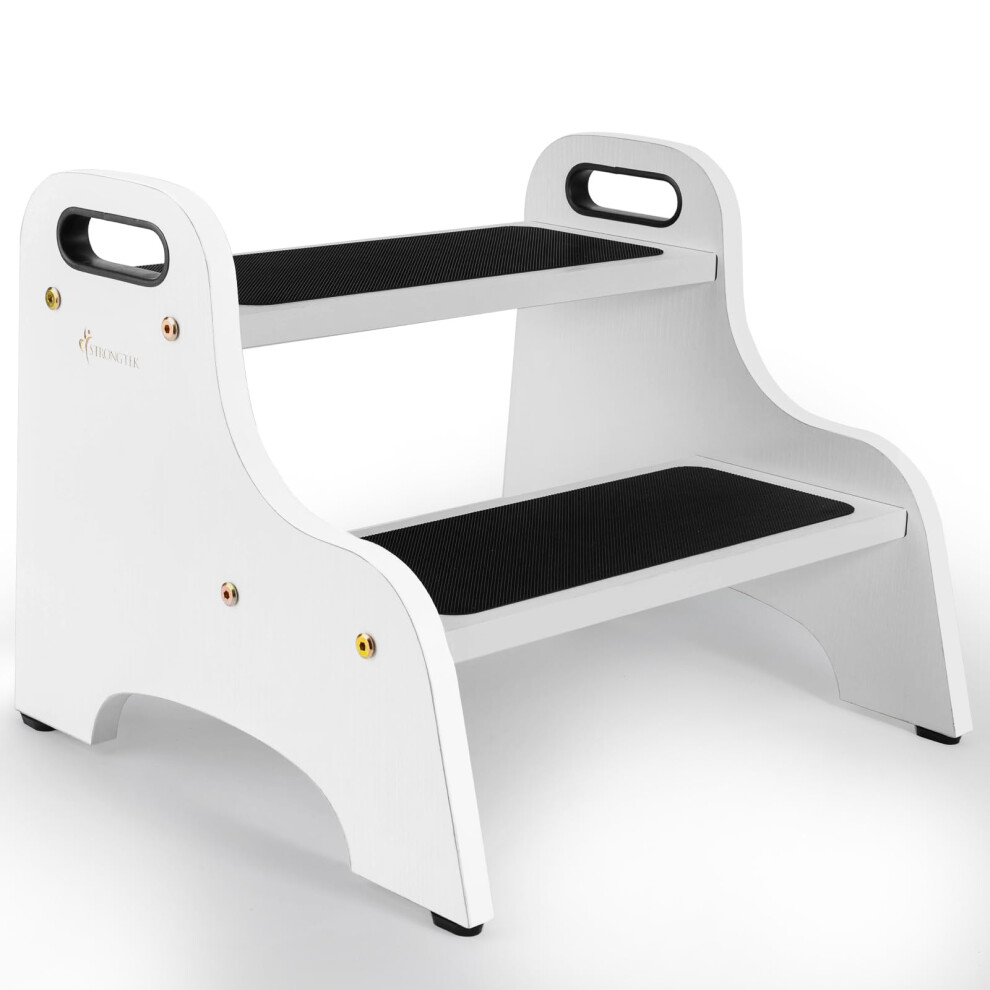StrongTek Wood 2 Step Stool for Kids with Non-Slip Stepping Surface, Portable Handles, Skid Resistant Foot Pads, and 300 lbs. Capacity, Multipurpose H