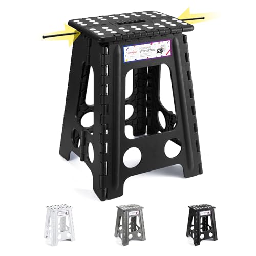 HOUSE DAY Folding Step Stool 18 Inch, Heavy Duty Step Stool for Adults, Portable & Collapsible Stepping Stools, Anti-Slip Stepstool, 330 LBS Capacity, Foldable Steps for DIY, Garage, Bathroom - Black