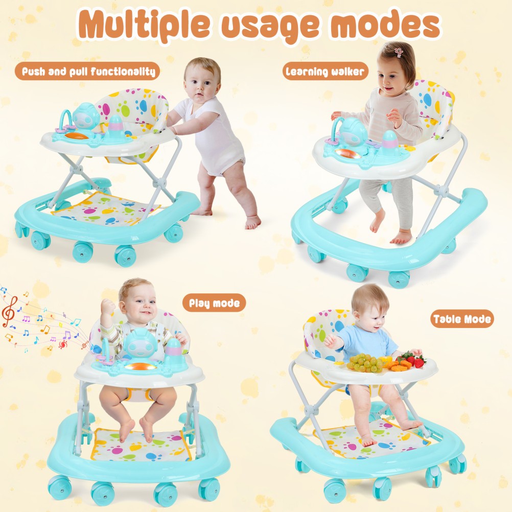Baby Walker Bouncer Foldable First Steps Push Along Activity Music Ride On Car