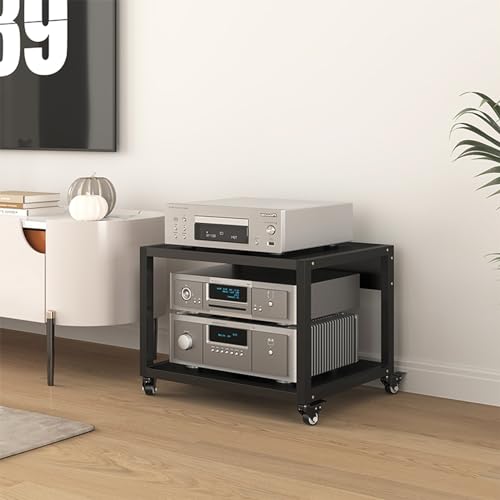 Wzmazingly 2/3-Tier Audio Component Rack,TV Stand Stereo Racks With Wheels, Steel/Wood Media Storage Cabinet For Amplifiers/Printers/Record Player/Game Consoles(50x40x49cm)