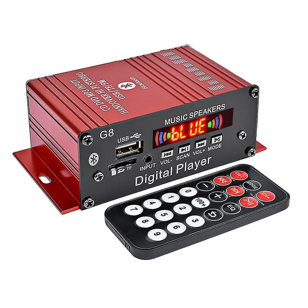 (As show, One size) G8 200W 12V Car Audio Amplificador HIFI Bluetooth Home Stereo Amplifiers Audio Power Amplifier FM Radio 2CH USB TF AUX-C10
