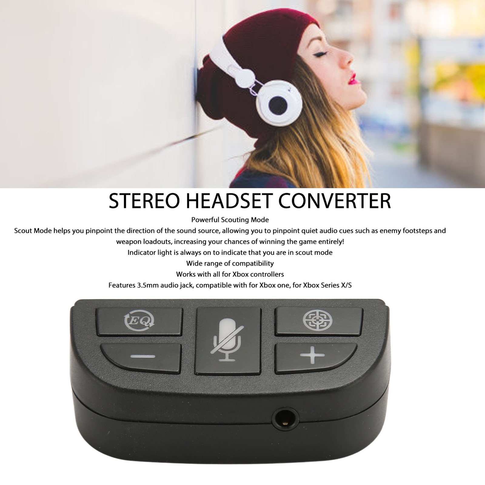 HUSHUI Stereo Headset Adapter, Voice Control with 3.5mm Jack Sound Enhancer for One and Series X/S, Game Mode and Scout Mode with M Button for Sound Balance