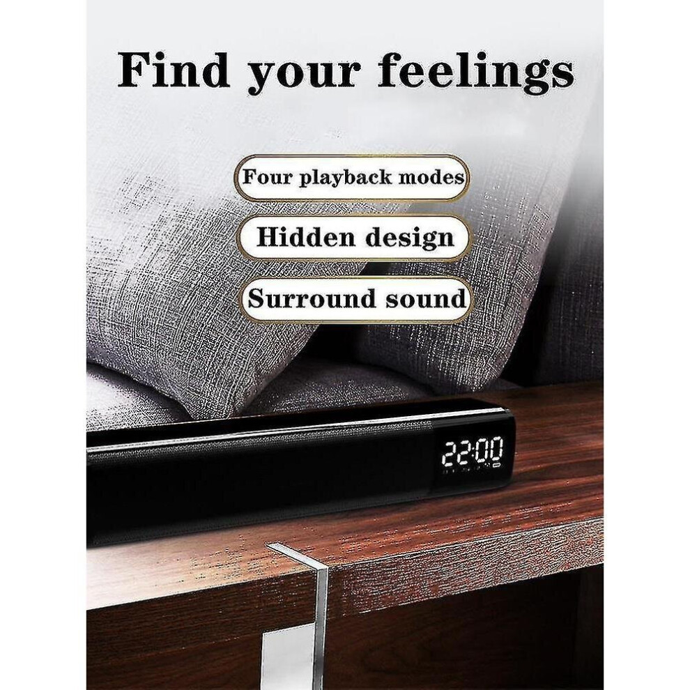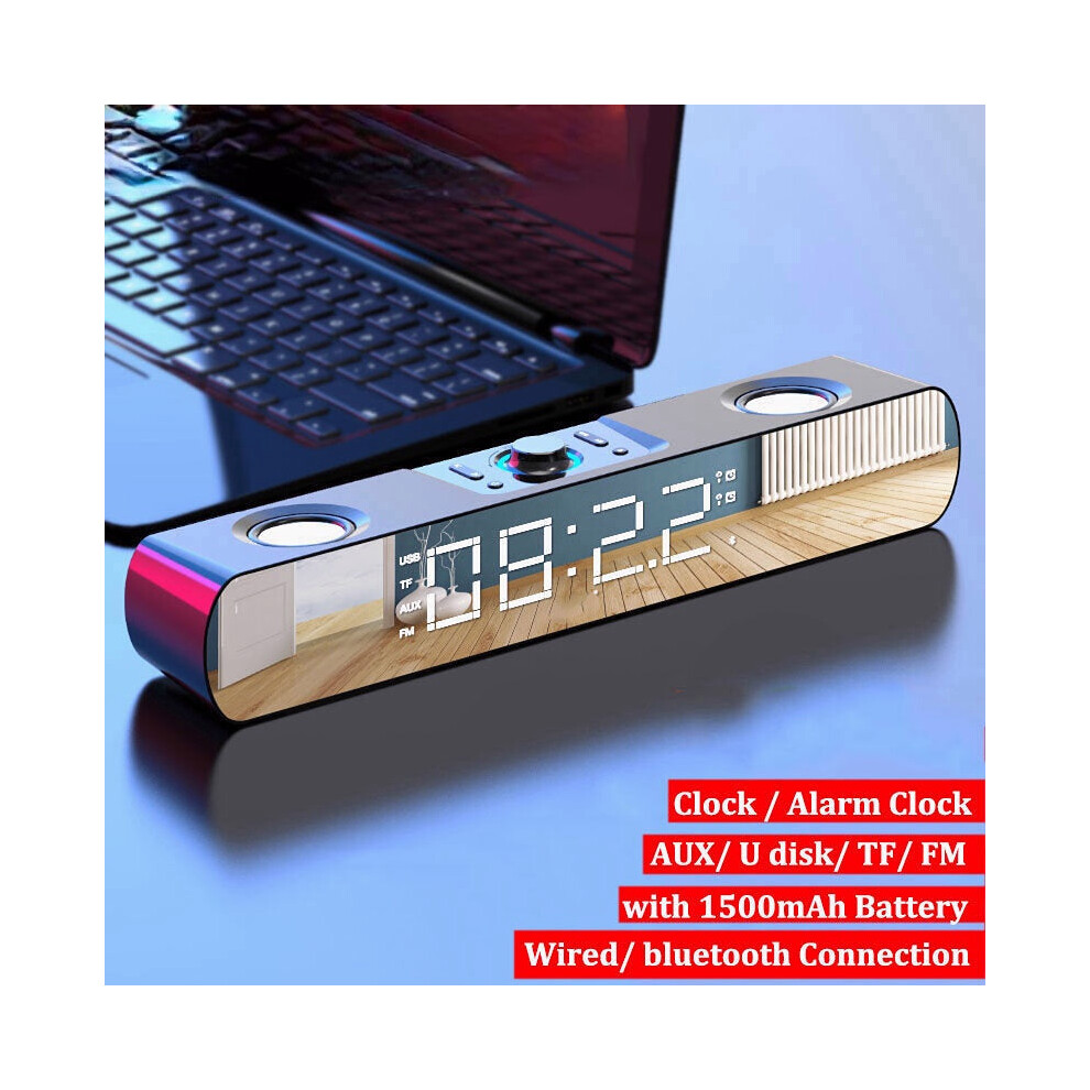 (bluetooth version black) Bluetooth 5.0 Speaker Stereo Subwoofer Bass Four-Units Noise Reduction FM Radio TF Card AUX-In Alarm Clock 1500mAh LED Mirro