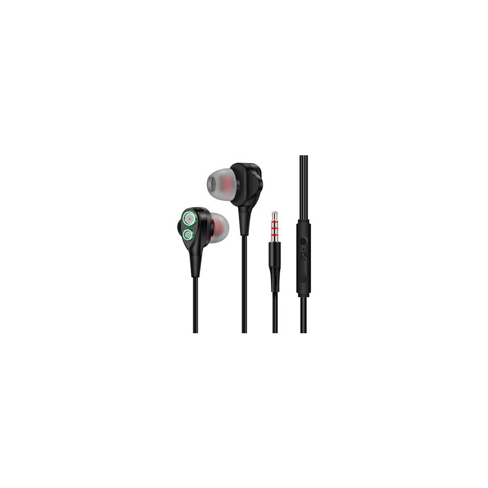 Dual Dynamic Units Earphone 3.5mm Jack Wired Control Earbuds Stereo In-ear Headphone with Mic