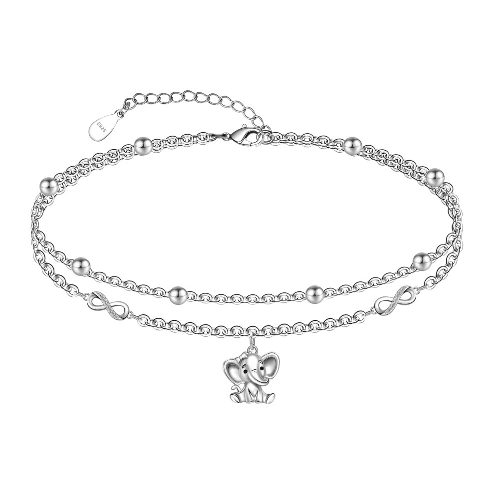 Elephant Ankle 925 Sterling Silver Ankle Bracelet for Women Dainty Layered Anklet Bracelet Boho Anklets Bracelet Beach Adjustable Anklets