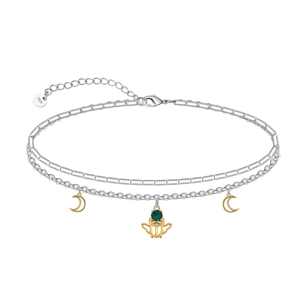 CHIC & ARTSY Ladybug Anklets 925 Sterling Silver Layered Ankle Bracelet Adjustable Lightweight Ladybug with Moon Charm Foot Chain for Women