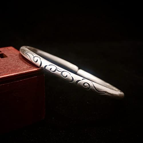 Sterling Silver Bracelet,925 Sterling Silver Hand-Carved Fortune Clouds Bracelets Bangle Retro Handmade Matte Solid Silver Cuff Bangles Orient Bracelets Eternity Jewellery For Her Women Girls