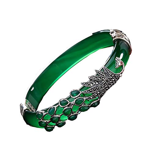 Yajun Peacock Jade Bangles Silver Animal Chalcedony 925 Sterling Silver Bangles for Women Creative Bracelet Jewelry,Green