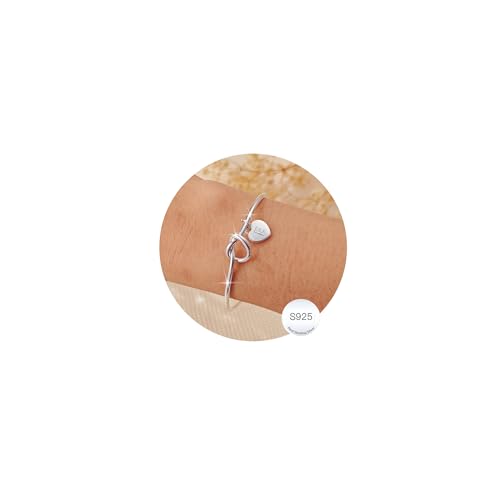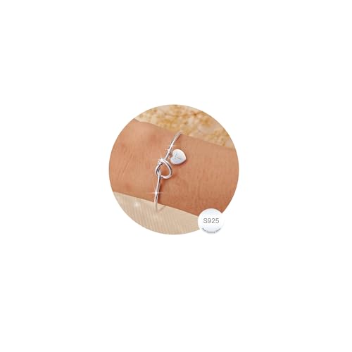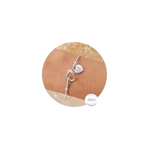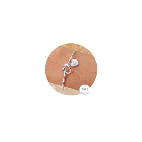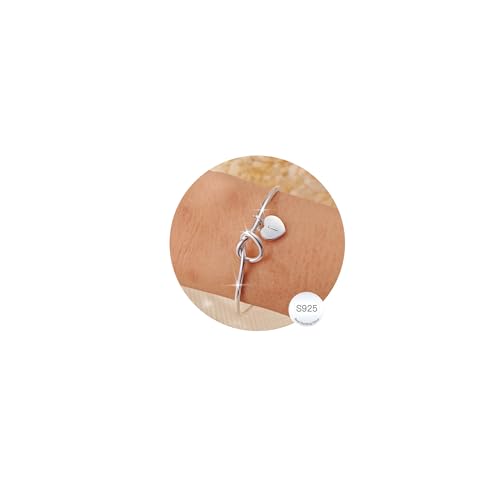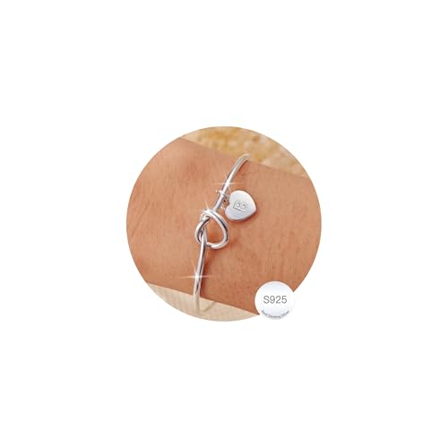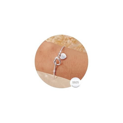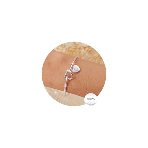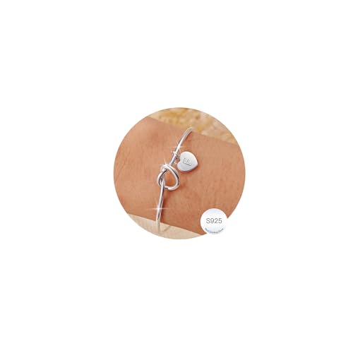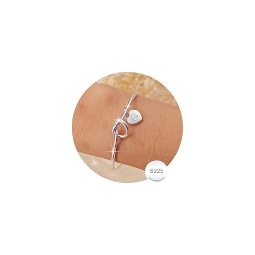 Diorra Initial Bracelet for Women, S925 Sterling Silver Bracelets Adjustable Heart Charm Open Knot Cuff Bangles Jewellery Gifts for Women Girls