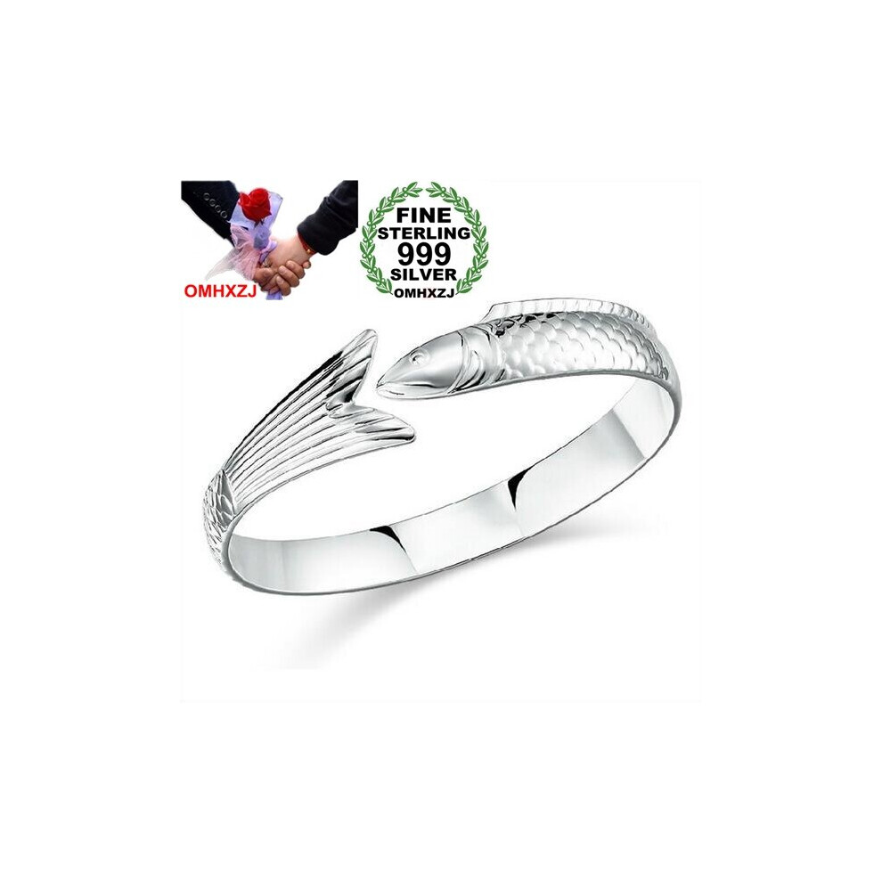 geometric single fish woman kpop star Fine 999 Sterling Silver opening bracelet Bangles SZ20
