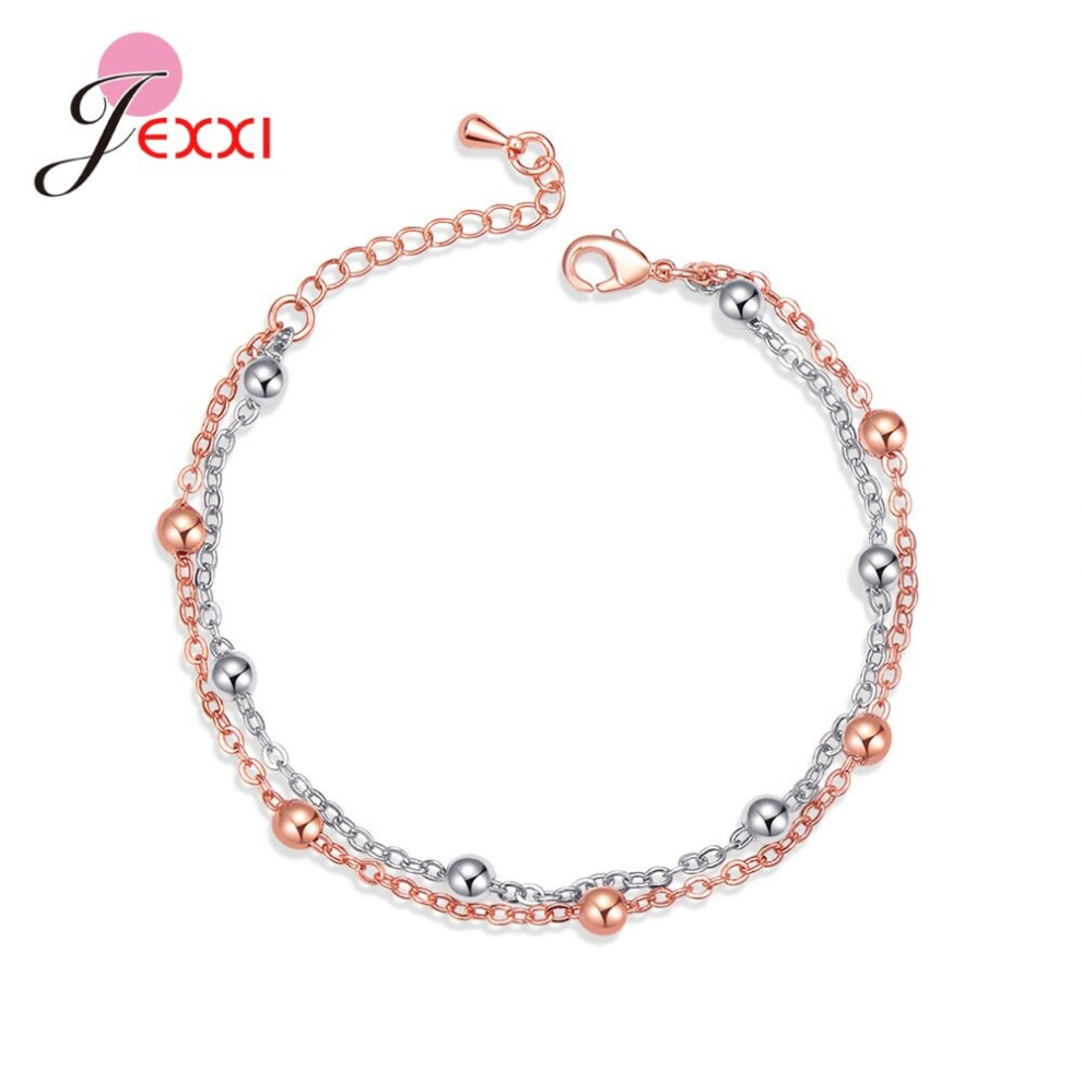 Double Chains 925 Sterling Silver Charm Bracelets/Bangles For Women/Girls Wedding/Engagement Party Jewelry