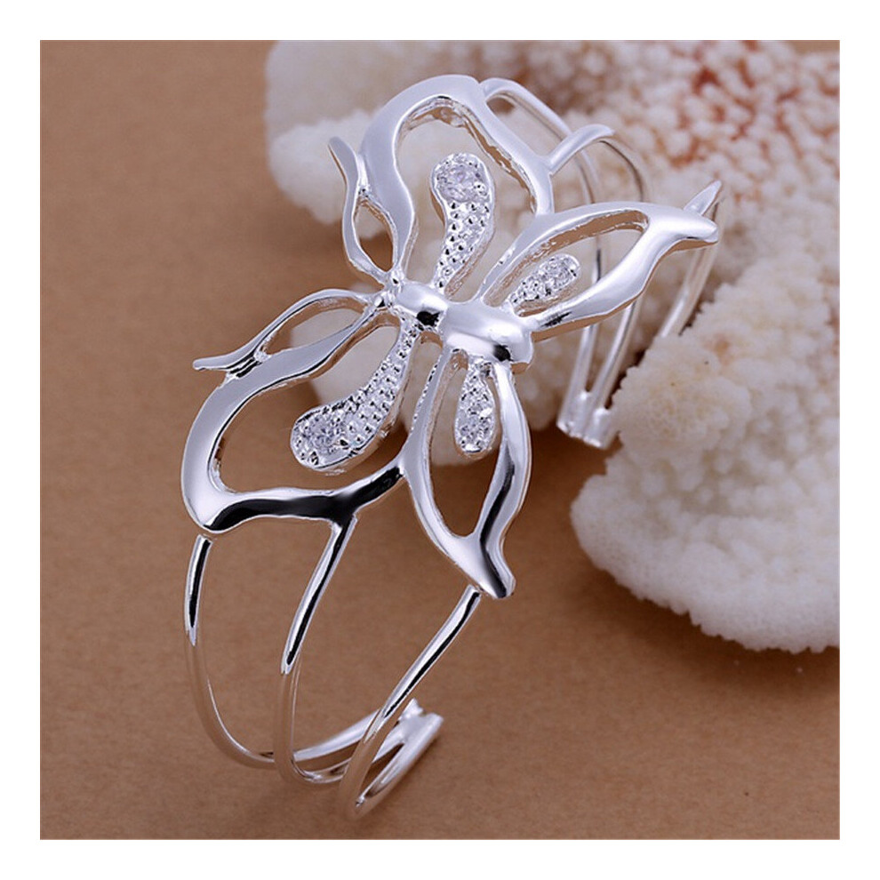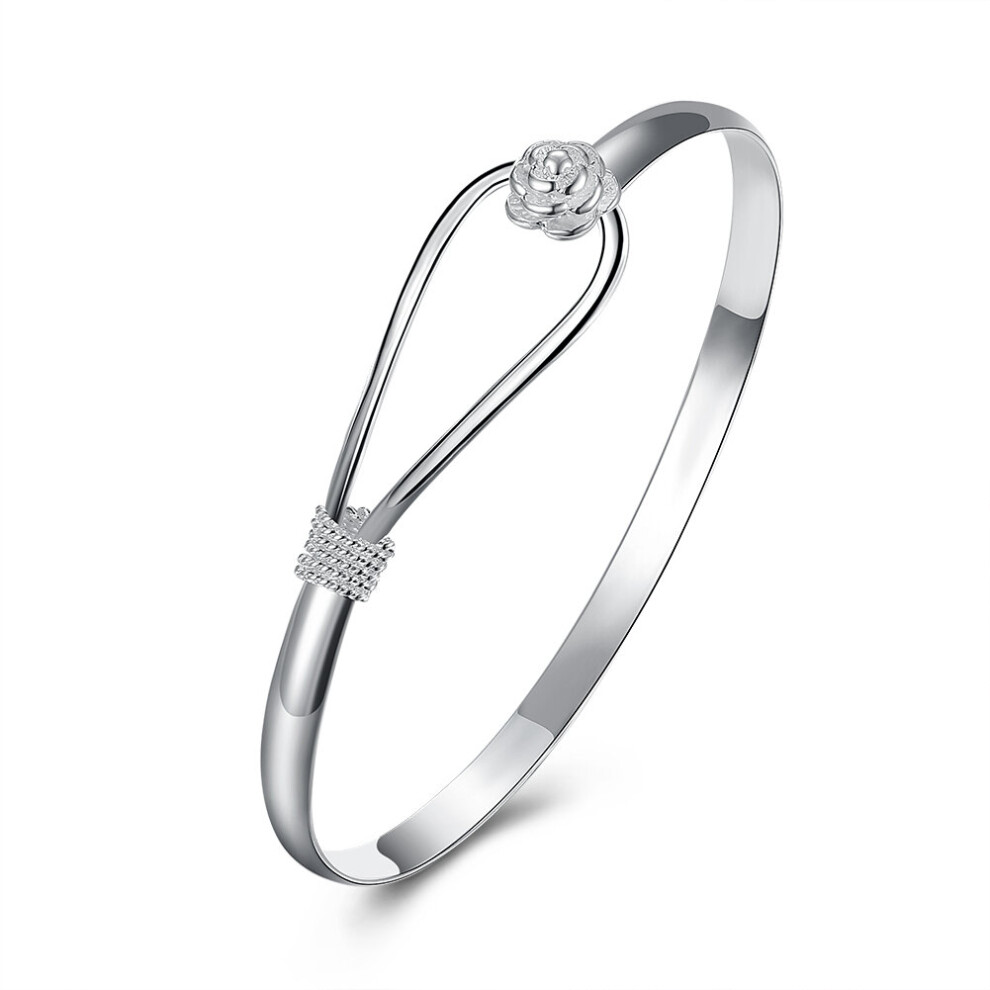 High Women's 925 Sterling Silver Flower Bangles Bracelet Wedding Jewelry Female News Trends