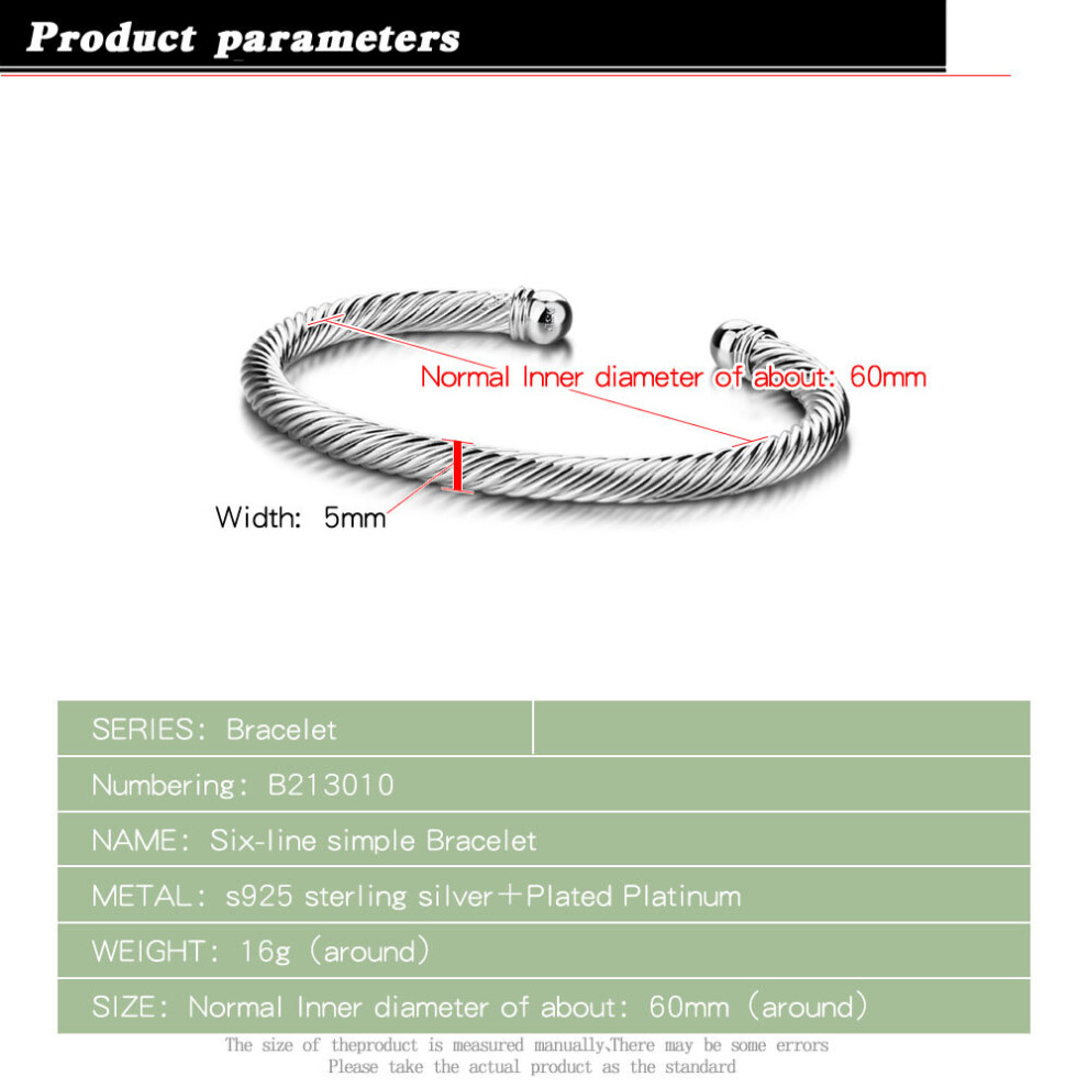 925 sterling silver bracelet bangles for men women Round twisted lines bracelet jewelry wide 5M8MM