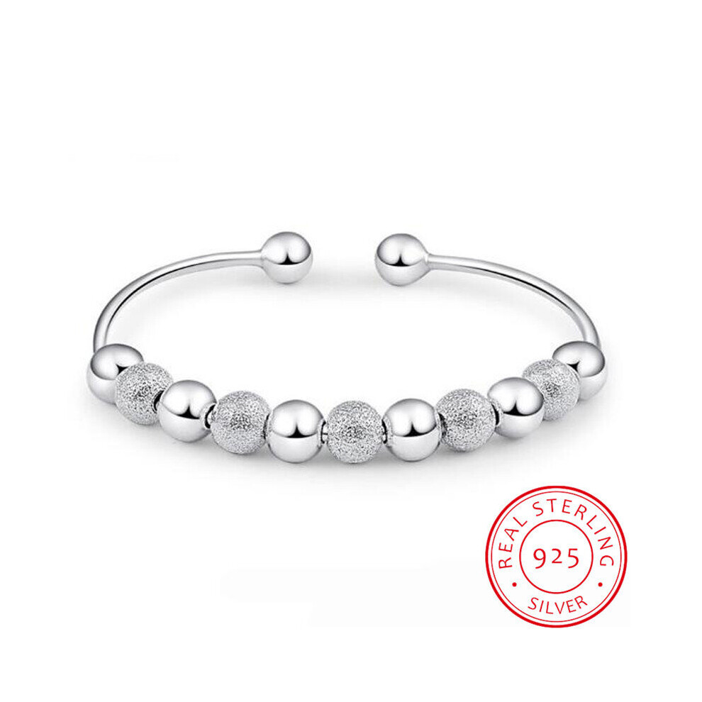 Hot Women 925 Sterling Silver Lucky Beads Bangles Open Cuff Bracelets & Bangles Jewelry pulseras of Female S-B15