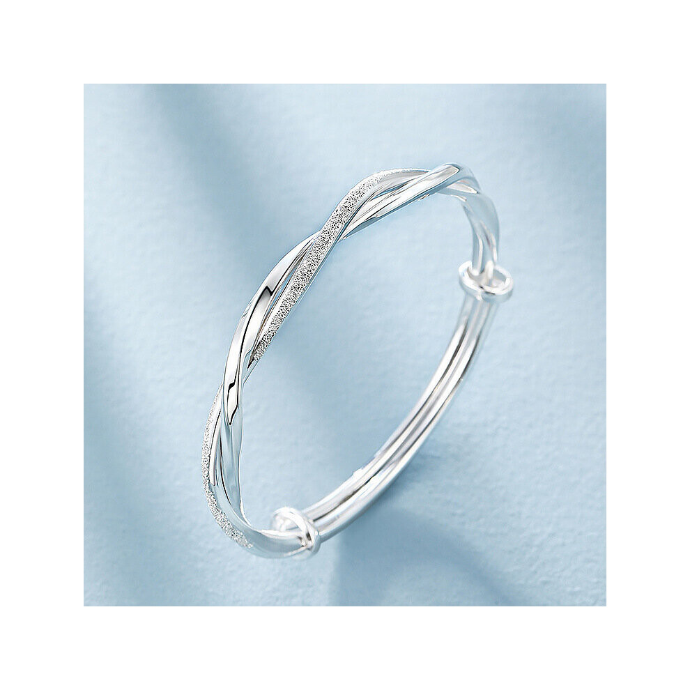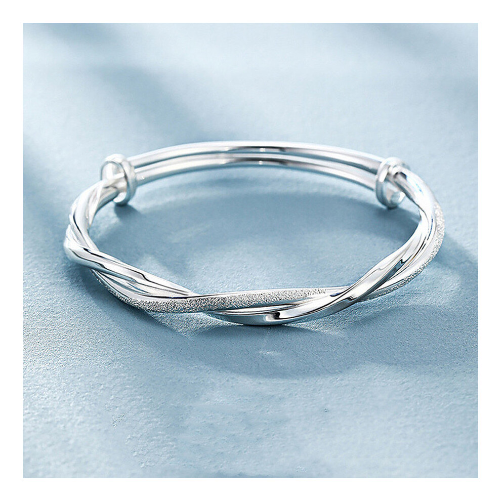 jewelry geometric Love Intertwine woman kpop star Fine 999 Sterling Silver Bangles SZ07 adjustable