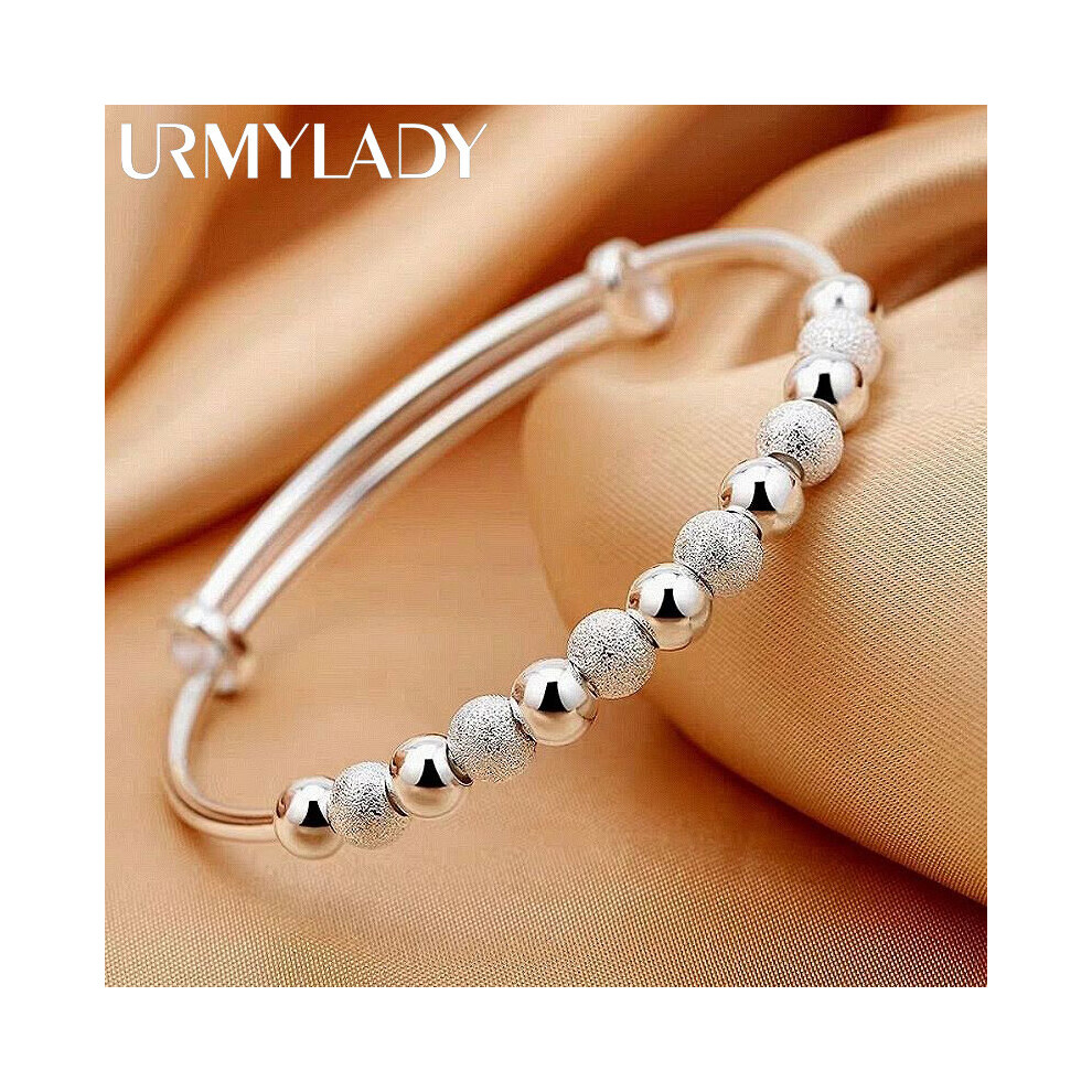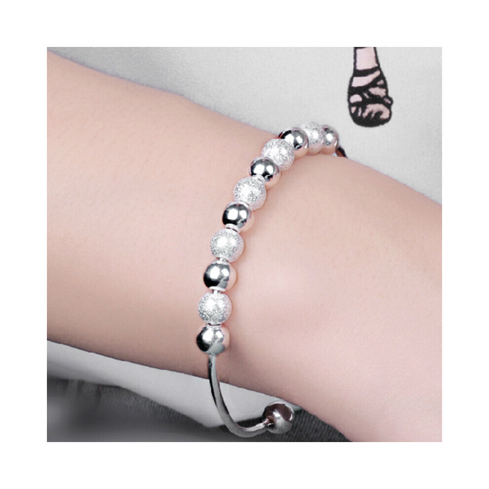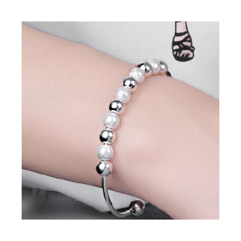 jewelry round woman kpop star lucky bead 925 Sterling Silver adjustable Bangles SZ03