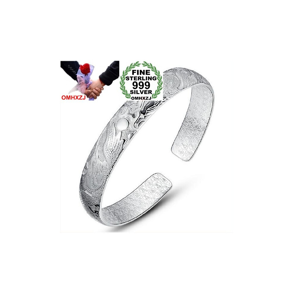 OMH jewelry geometric Dragon phoenix woman kpop star adjustable Fine 999 Sterling Silver Bangles SZ06